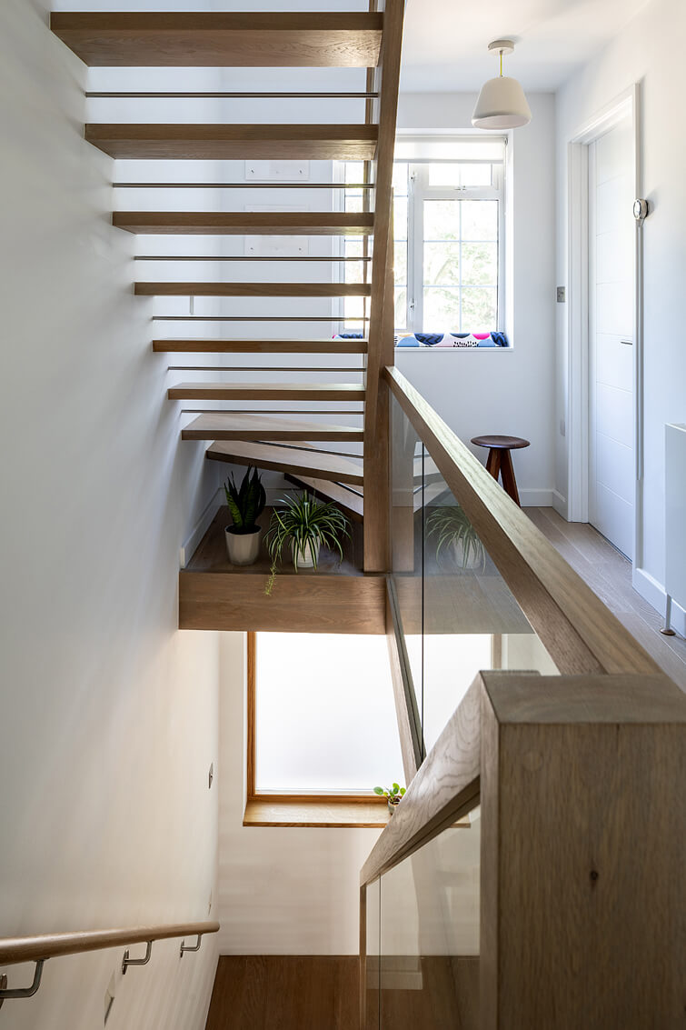 A key aspect of the project was the strategic allocation of budget across the brief. The result demonstrates how thoughtful design can deliver both quality and value. A consistent level of internal finish ensures the extended ground floor reads as an integral part of the home rather than an addition. A new sustainably sourced Oak staircase connects all levels, reinforcing continuity.
